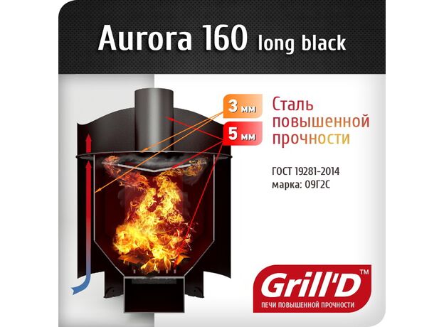 Печь для бани Grill'D Aurora 160 Long со стеклом