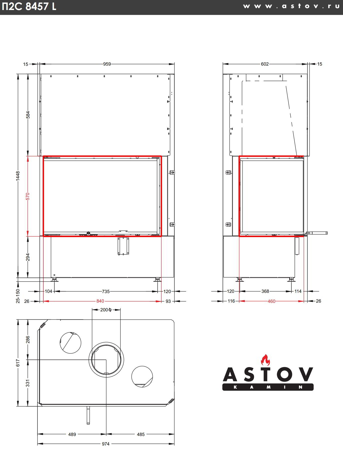 Каминная топка Astov П2С 8457 L