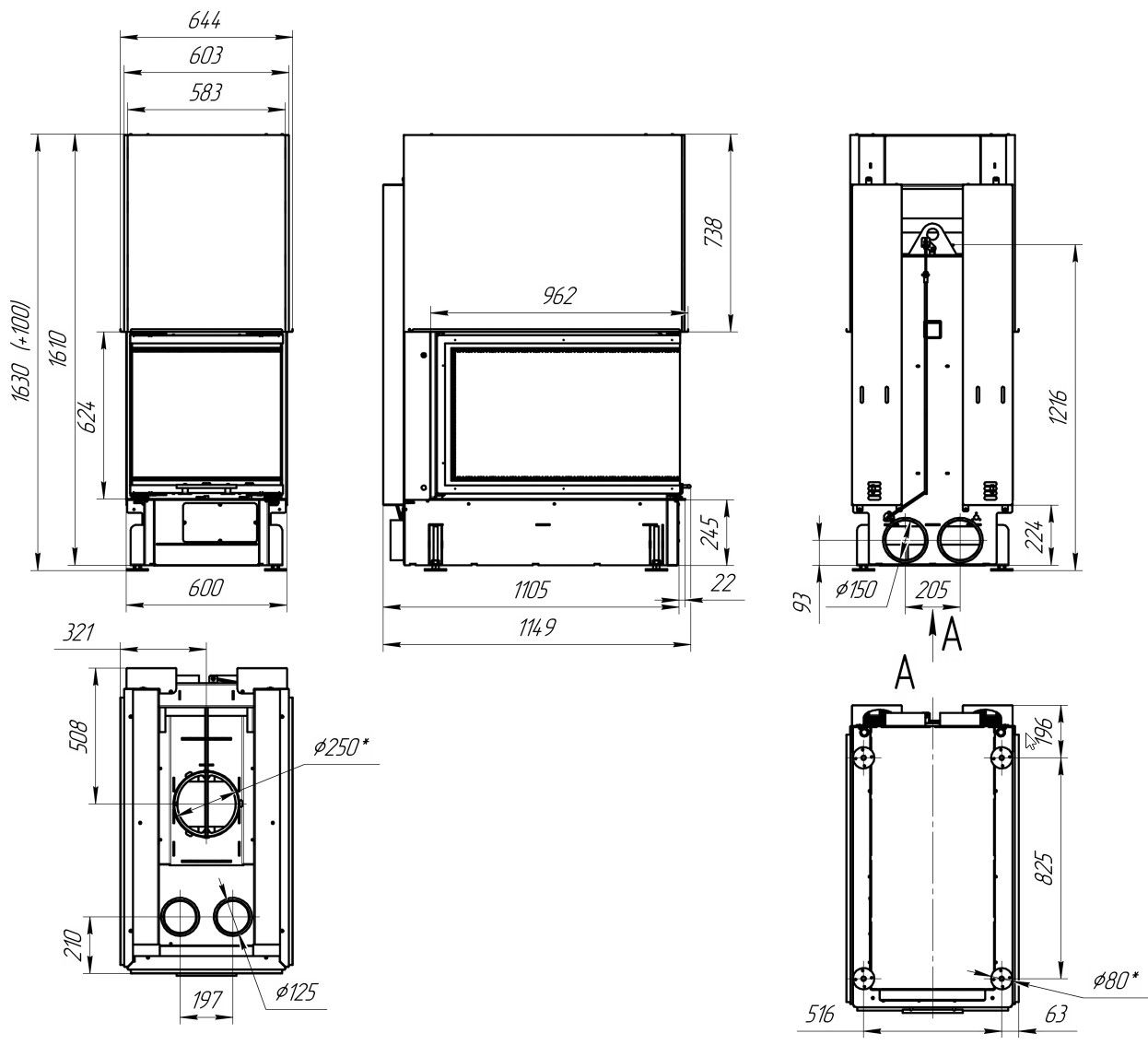 Диаметр дымохода: