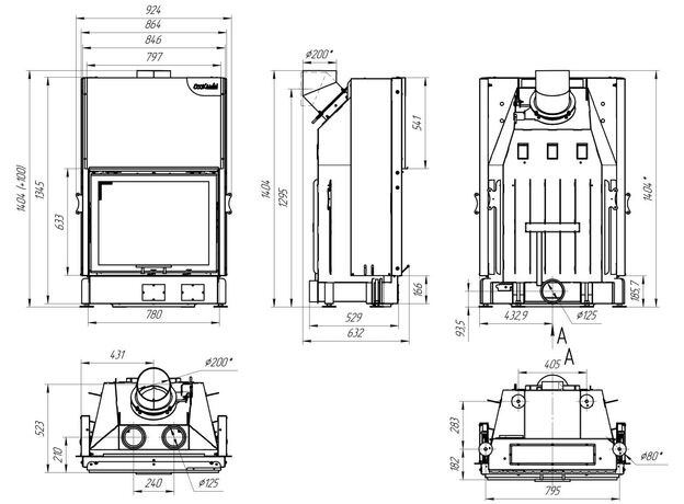 Каминная топка EcoKamin Вега 800 P