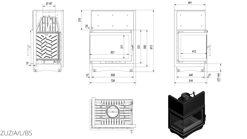 Каминная топка Kratki Zuzia 16 L/BS