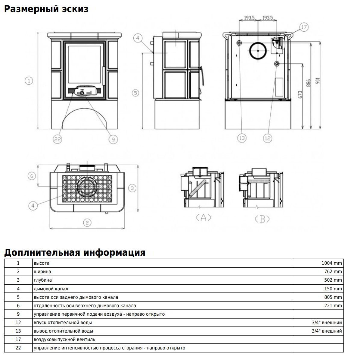 Печь-камин ABX Bavaria K с теплообменником