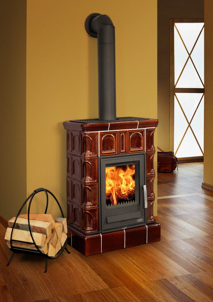 Печь-камин ABX Britania KI с кафельным цоколем и теплообменником
