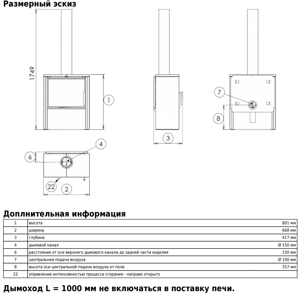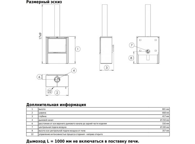 Диаметр дымохода: