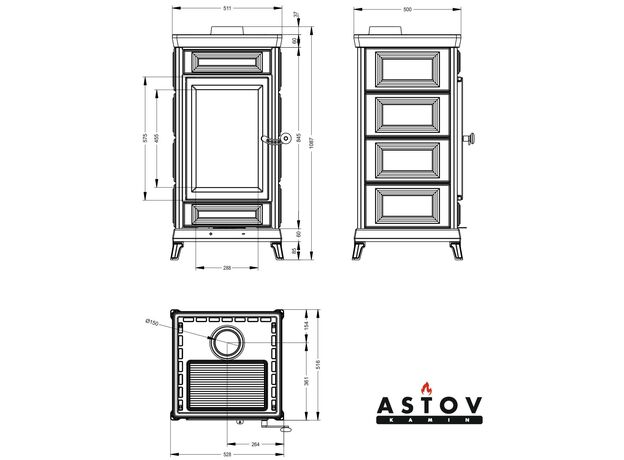 Печь-камин Astov Майолика Чёрная